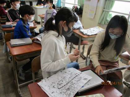 おうちの方は、子ども達の作品が何に見えるでしょうか。来週の参観懇談会では、墨と水と筆でつくったそれぞれの世界をぜひご覧ください