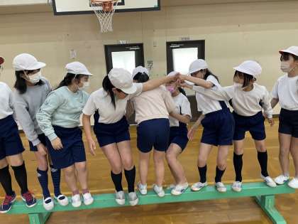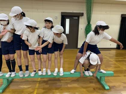 コミュニケーションをとりながら、楽しく体を動かす活動をしました。協力したり、息をそろえたり…。ほどよく汗をかいて気持ちもスッキリです。