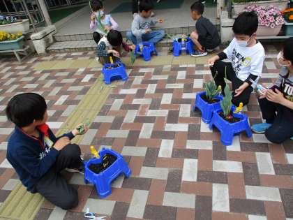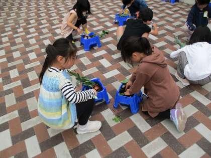 植木鉢の片づけをして、球根を持ち帰りました。植木鉢は2年生の授業でも使います。次は何を育てるのかな?
