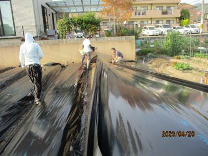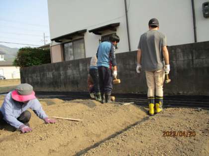 木曜日は、畝を整えてマルチシートをはったり、防草シートをしいたりしました。今年度は新しい防草シートをしいたので、スッキリ!
