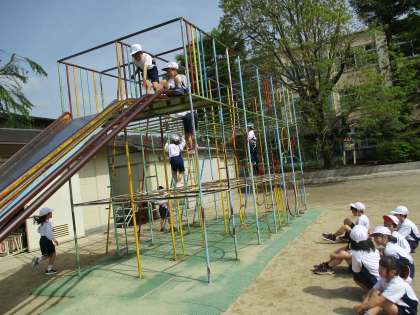 中間休みは総合遊具が2年生でいっぱいになりました。