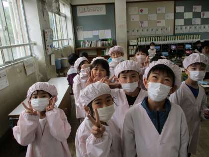 先週のくまグループさんから交代して、今日から魚グループさんが給食当番になりました。給食の配膳も2年生になって早くなりました。成長を感じます。