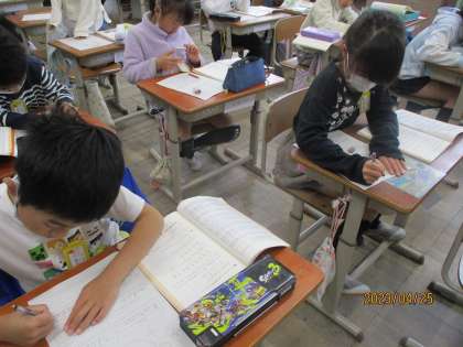 今日はローマ字を使って、自己紹介カードを書きました。ローマ字の書き方に苦戦しながらも、完成しました。参観日には教室掲示をしていますので、ぜひご覧ください。