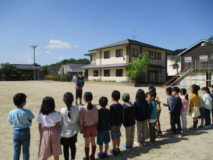 教頭先生にお手伝いして頂きながら、スポーツテストの「ソフトボールなげ」を行いました。20メートルを超える距離を投げる子もいて、ほかの子どもたちから驚きの声があがっていました!