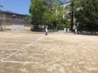今日は全校でソフトボール投げの記録をとりました。円の外に出ないようにしながら、遠くまで投げられるように頑張りました。