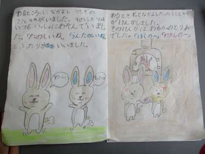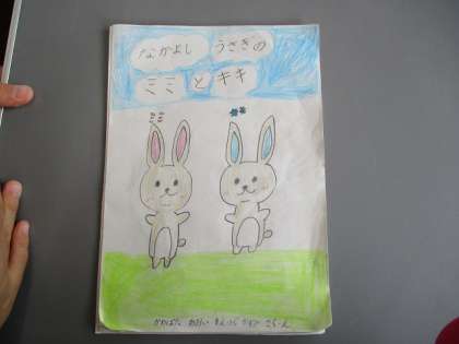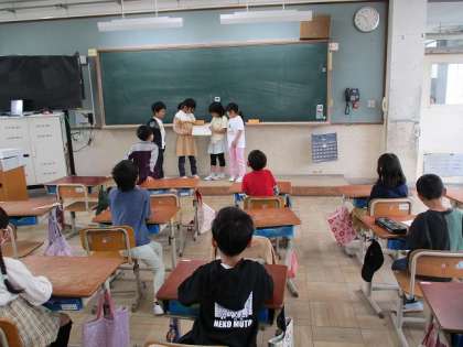 中間休みの時間を使って、図書係さんが手づくりの絵本を読み聞かせしてくれました。