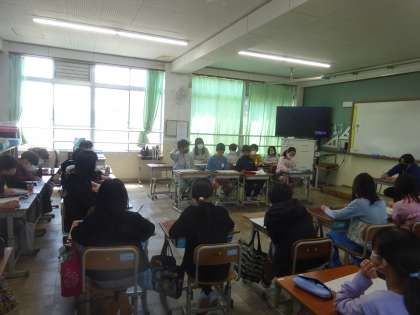 意見を言い合う2つのチームとジャッジに分かれて行っています。