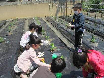 畑の先生たちに教えていただき、無事に苗植えを終えることができました。