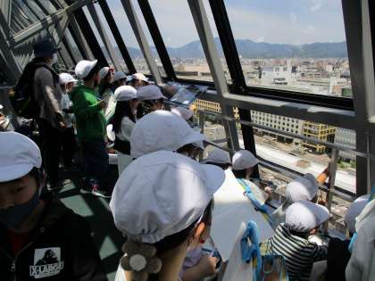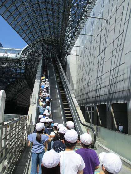 京都駅についた途端「おーーーーー!」の歓声。人の多さや建物の高さ、車の多さなどいろんなところに目を向けて見学していました。