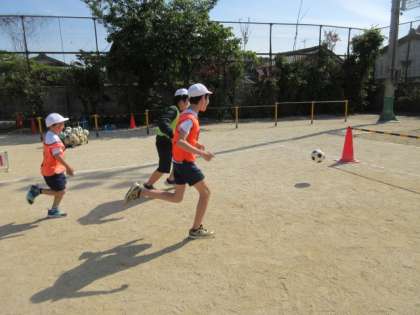 積極的にボールを取りに行く様子や、仲間にパスをする姿が見られました。勝ち負けはありますが、みんなで楽しくサッカーをすることができました。