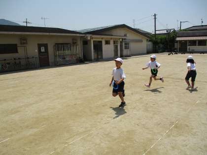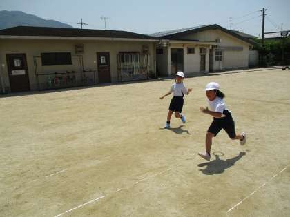 体育科の「リレーあそび」では、リードの取り方など、速く走るための
