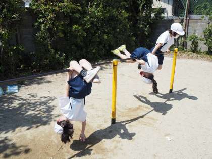 しっかり鉄棒を掴んで活動ができるようになってきました。いろいろな技に挑戦し、休み時間にも練習する姿が見られます。