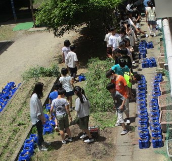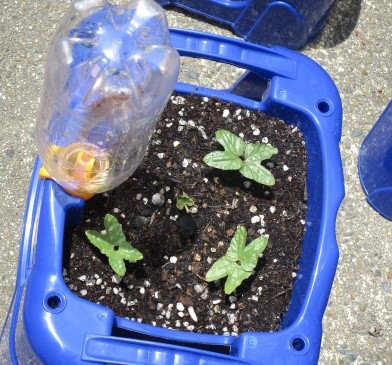 理科「季節と生物(春)」の学習中です。四季を通してツルレイシを観察します。堅い皮に包まれたツルレイシの種。播種してからなかなか芽が出てきませんでした。あとから播種した一年生のアサガオは、早々と芽を出しているのに…。気温も上がった先週にようやく芽が出ました。やっと観察。子葉がかわいらしく顔を出しています。どのくらいに育つのか楽しみです。