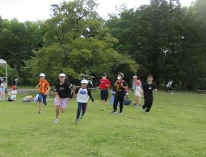 食後は、芝生広場で鬼ごっこやだるまさんがころんだをして遊びました。いっぱい食べて、いっぱい体を動かして、パワフルな子どもたちに驚きました。