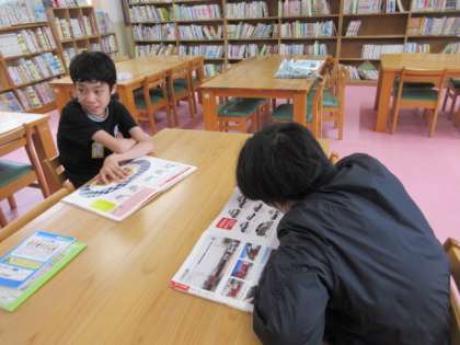 子どもたちは気になる本を見つけて、じっくり読むことが大好きです。ラーメンが好きな子は麺類の本を一生懸命探し、鉄道が好きな子は電車の図鑑を眺めて落ち着いて過ごしました。