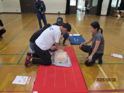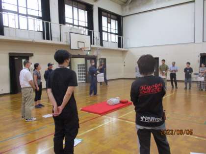 放課後に講師のみなさんに来ていただき、心肺蘇生法の研修をしました。救命処置や緊急時の対処方法を身につけ、協力し合って大切な命を守る、安心安全な学校でありたいです。