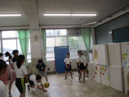 今日の昼休みは、4年生が遊びに来てくれました。一緒にキャッチボールをしたり、バレーボールのラリーを続けたりして、ボールを使って楽しく交流しました。