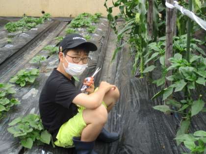 今日の収穫は少しだけでしたが、これからが夏本番です。今後は、毎週たくさんの野菜が取れることと思います。力仕事になりますが、美味しい野菜のために、みんなで頑張っていきます。