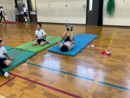 昨年、練習した技の感覚を取り戻しつつ、新たな技の習得に向けて一人一人が取り組んでいます。自分の技を撮影し、友達と動画を見て話し合ったり、お互いにコツやイメージを共有したり習得への工夫をしています。自分の目標に向かって練習していきましょう!