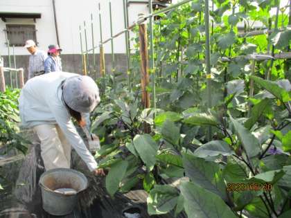 今日は畑の先生から肥料の撒き方と誘引の仕方を学びました。「なすって生で食べられるんだ!」「立派なきゅうり!こんなにたくさん!」めいとく農園の野菜はすごいです。