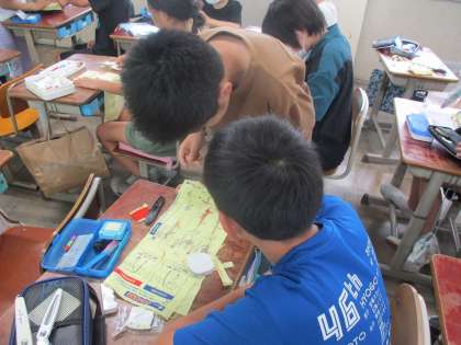 裁縫セットを使って様々な縫い方に挑戦しています。ようやく玉結び,玉留めに慣れてた様子ですが本がえし縫いに半がえしぬいと新たな試練がありますが,仲間と協力しあって取り組んでいます。小物作りに向けて少しずつ頑張っていきましょう!