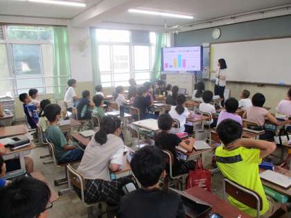 情報モラル市民インストラクターをお招きして,インターネットの使い方についての学習をしました。SNSも一度投稿してしまうと全世界に広がるため,使うときは慎重に使わなければならないことを学習しました。これを機に安全に使えるといいいですね。