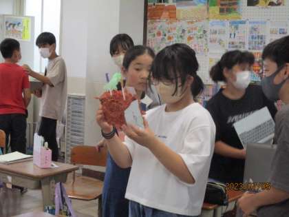 友達の作品を手に取って、クランクの仕組みの生かし方を見てみました。