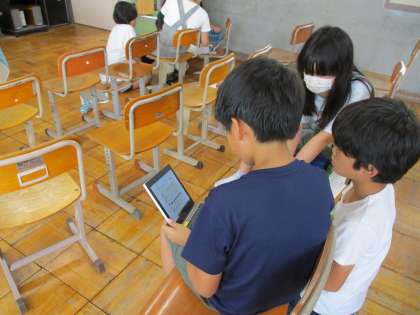 スクラッチの教材を使いながら真剣に話し合う姿がすてきでした。