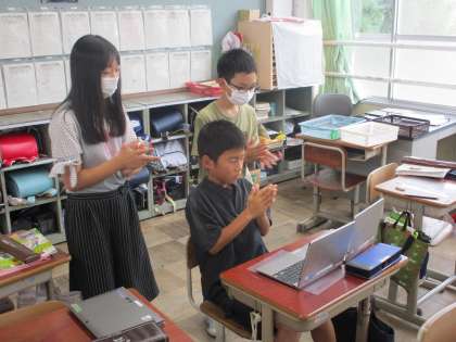 音楽の学習でリズムアンサンブルに挑戦しています。今日は音の重なりや反復等を意識しながらグループで練習に取り組みました。リズムがずれないように声をかけあって手拍子をそろえる場面がありました。どのグループのリズムも特徴があり面白いです。