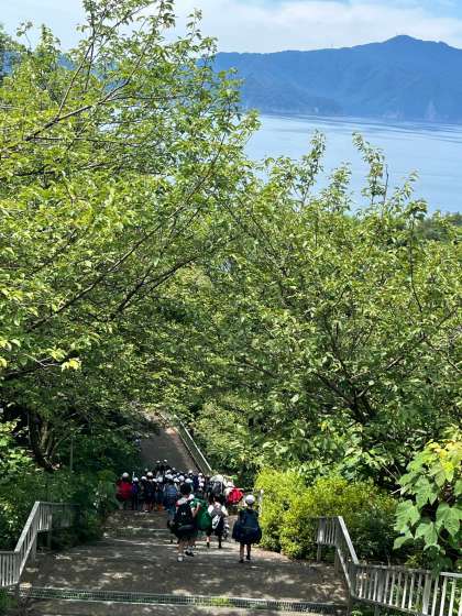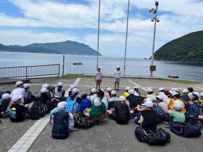 無事に若狭湾少年の家に到着しました。途中のバスの中で車酔いで、気分が悪くなる子もいましたが、回復しています。入所式を終え、昼食もおいしくいただきました。これから活動準備をはじめて、水泳を行います。
