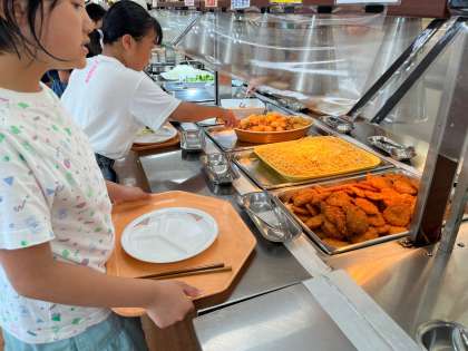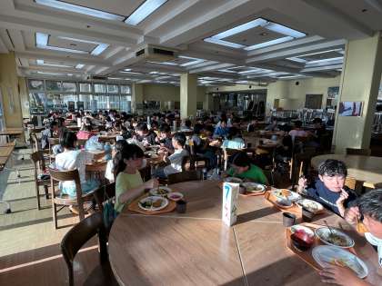 海でたくさん身体を動かしたので、食欲も旺盛。たくさんのおかずにカレーのおかわりをしている子もいました。ドリンクバーも人気です。