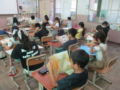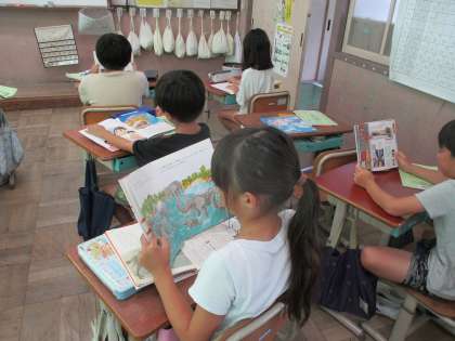 図鑑や科学読み物などの本を読んで、本で知ったことを紹介します。今週はどのクラスも本を読んで自分の紹介したい本を選びました。