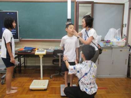 今日は二学期が始まったので,健康診断を行いました。子ども達は,以前に診断した時と比べてどれだけ成長したのかについてワクワクしている様子でした。