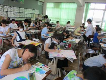 絵具やポスターカラー、色鉛筆など、様々な画材を駆使して工夫しながら頑張っています。