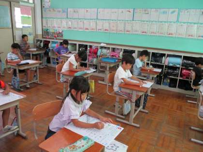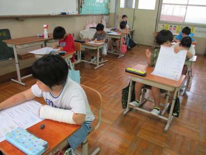 算数科「かさ」のテストを行いました。