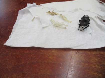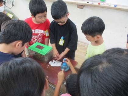 今日の休み時間には、生き物係さんが珍しい、バッタが脱皮したものを