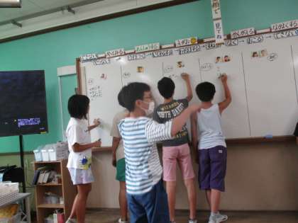 今日は国語課の学習で「言葉集め」を行いました。課題の色を決めて,その色にあった物やキャラクターなどをそれぞれで考えました。自分の記憶をたどったり,教室の中にお題の色の物がないかなど,子ども達は一番多く集めるために一生懸命でした。