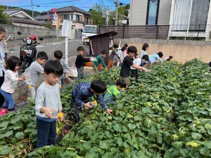 5月から育てているさつまいも。夏休みが明けると、畑は葉と茎でいっぱいになっていました。