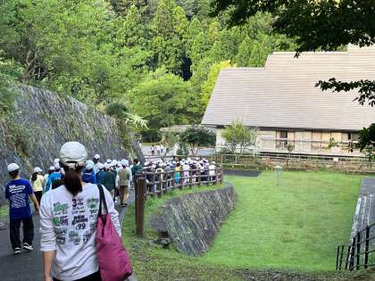 2日目 朝食前の朝の散歩に出かけました。森林の中、自然の香りのする空気をいっぱいに吸って、20分ほど歩きました。途中、くつろぐシカにも出会いました。今日の活動のウォーミングアップです。