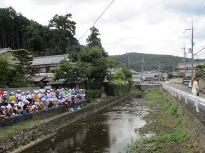 学年だよりでもお知らせしましたように、9月13日に、パックテストによる岩倉川の水質検査と、水辺の生き物調査を行いました。その学習の様子をもう少し紹介します。
