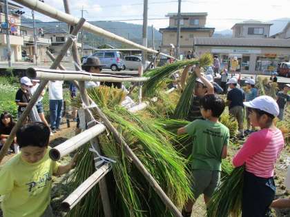 めいとく学習ではもち米の稲刈り見学をしました。バインダーという機械で刈り取っていきました。手作業ではなく,機械の速さに驚いていました。また,何人かの子どもたちにバインダーで実際に稲刈り体験をさせていただきました。スイッチにしたとたん横にずれるなど,畑の先生方のすごさを実感しました。次はうるち米を自分たちで刈ります。頑張りましょう!
