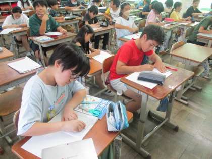 算数科では分数の単元に入りました。2分の1,4分の2,6分の3…どれも同じ,等しい分数ってどうやって作るんだろう。分母にも分子にも同じ数をかける,わることでできることに気付きました。しっかり覚えておこう!
