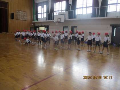 今日は運動場と体育館で台風の目とハカの練習をしました。ハカは体育館で練習して、お互いの色の今の出来栄えを鑑賞しました。明日の練習も頑張りましょう!