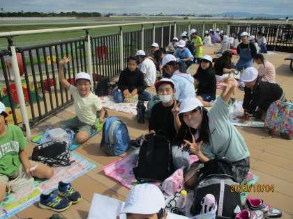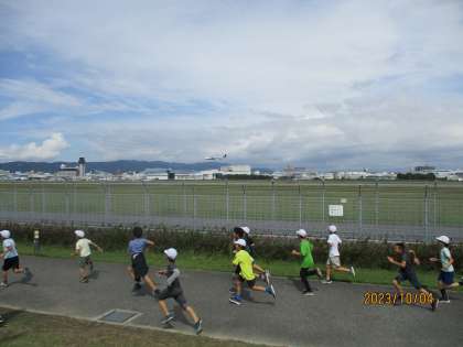 工場見学の後は、伊丹空港の近くの公園に移動して昼食をとりました。公園に到着すると大きな音を立て、飛行機が飛び立っていきました。手を振りながらお弁当を食べていました。ご飯を食べ終わると、発着陸する飛行機と並走して、速さ比べをしていました。飛行機には敵わないとは分かっているものの、何度も何度も走り、学校とは違う環境で楽しんでいました。お弁当の用意、ありがとうございました。