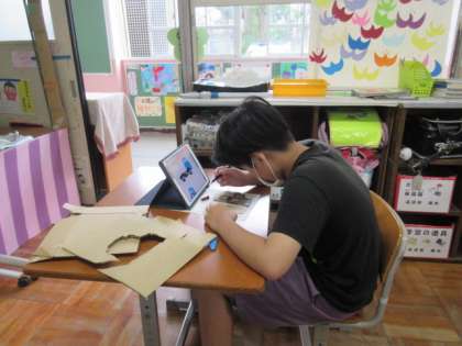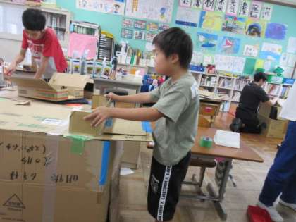 今日は図工科の学習で,「ダンボールで作ろう」を行いました。自身で作りたいものを決めて,まずは設計図から考えました。ダンボールカッターを使って好きな形に切り,貼ったり組み合わせたりしながら家や車などを作成しました。中には,ダンボール同士を組み合わせて連動する仕組みを考えるなど工夫する様子も見られました。まだまだ作成途中なので,完成目指して取り組んでいきたいと思います。