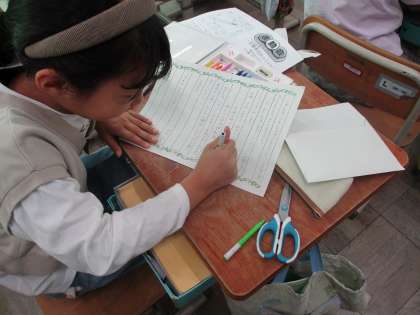 スポーツフェスタに来てもらいたい人へ案内の手紙を書きました。はじめのあいさつを書いてから伝えることやぜひ来てもらいたい気持ちを考えて丁寧な言葉を使って書きました。またプログラムに自分でイラストもかきました。最後は手作り封筒に入れて出来上がりです。渡した人に喜んでもらえるといいですね。