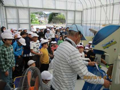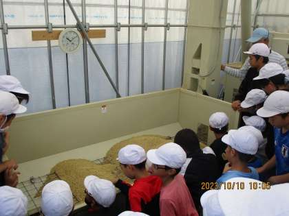 今日はもみすりの見学へ行きました。大きな機械を扱うため,子どもたちは興味深々に見ていました。その後は精米の様子も見ました。また,今回はJAの方にも来ていただきJAの案内をしていただきました。なかなかJAに行くことはないのでいい機会になったと思います。