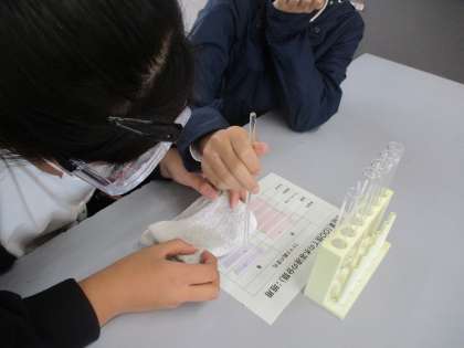 水溶液は薄めて使っているため反応が出にくいものもありましたが、5つの水溶液を仲間分けすることができました。