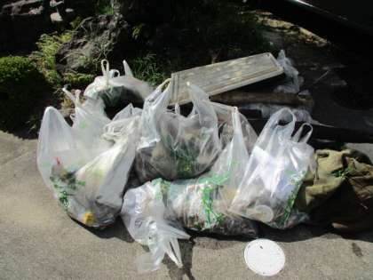 林会長に伺うと、この活動は8年前に9名から始められ、今は40名ほどの方で行われているようです。以前は一人でゴミ袋いっぱいになったそうですが、今回初心者はなかなか見つけられませんでした。これも会の方々の活動の賜物だと思います。それでも古くなったタイヤチェーンが投棄されているのが見つかりました。人としてのモラルが問われているような気がします。