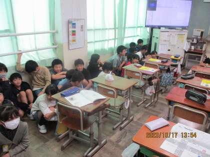 不審者対応の避難訓練を行いました。もし不審者が学校に侵入してきたときの対応を考えました。教室の端による,カーテンを閉めるなど,自分たちの命を守るための行動を確認しました。